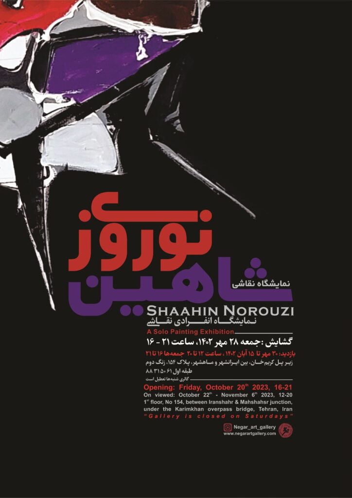 میان کنش نقاشانه شاهین نوروزی و تصاویر «خودْ ارجاع»، فاصلهای وجود دارد که نباید آن را تنها با دالهای زبانی اشباع کرد. امتناع وی از نامگذاری این مجموعه، از همین روست. استیتمنت نوروزی کماکان ساحت نقاشانه اوست؛ انسان معاصر و موقعیتهای ملتهب و حساس، موضوع تصویری این نقاش است و این ابژهها حامل بار روانی و دغدغه های اجتماعی- انسانیِ وی هستند. تلاش وی برای نمایش هویت بومی از تغییر ساختار آثارش همچون حذف پرسپکتیو آغاز میشود و در ادامه هر سه زمینه (پس زمینه، میان زمینه و پیش زمینه) به یک زمینه فعال بدل میگردد. این ترفند بصری و مداوم، نقش انضمامی نوروزی، در آثار اوست.
