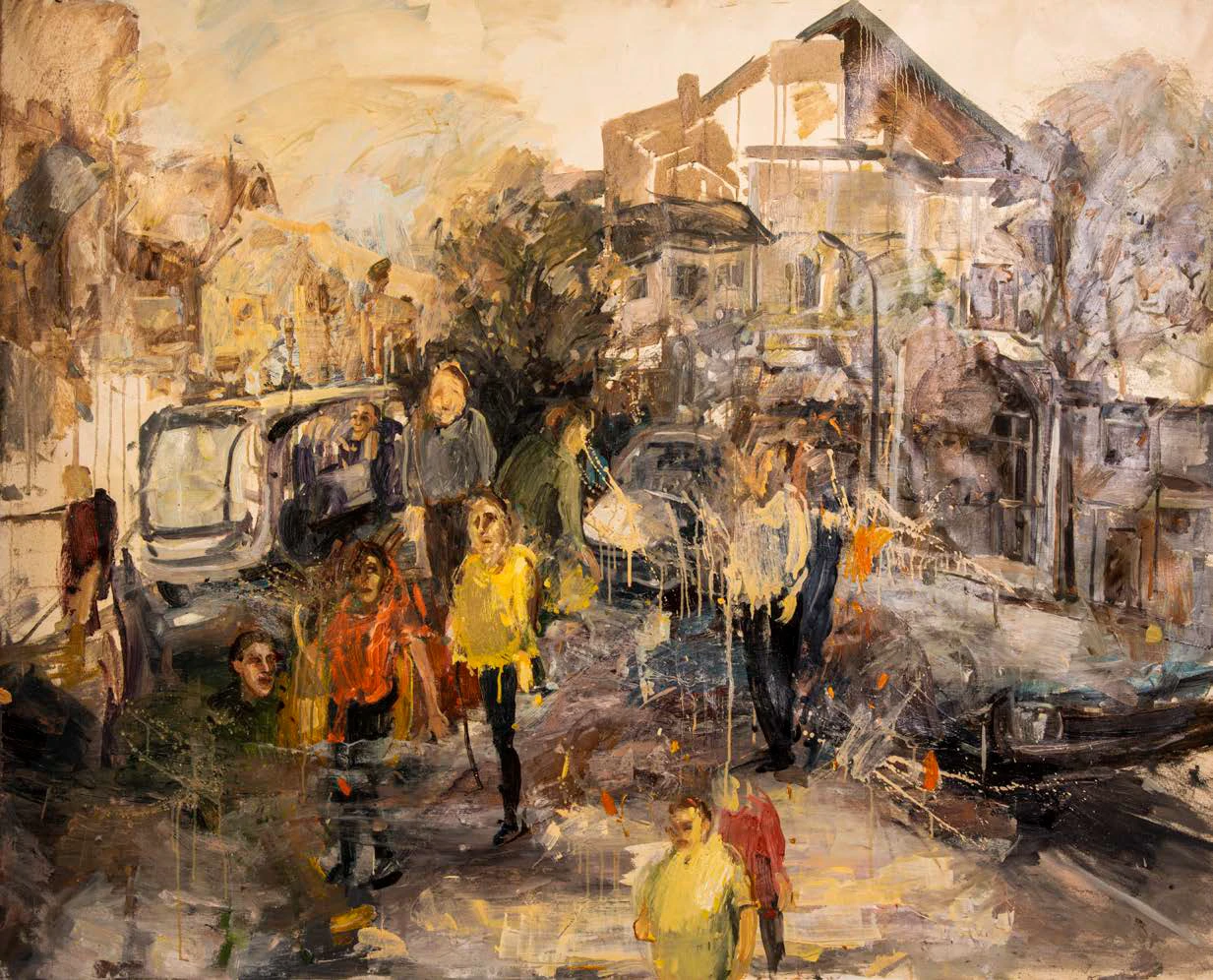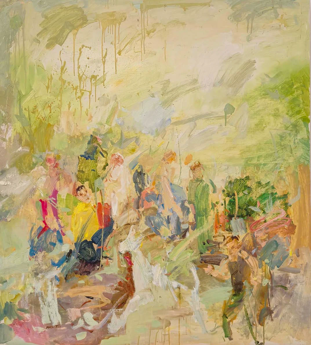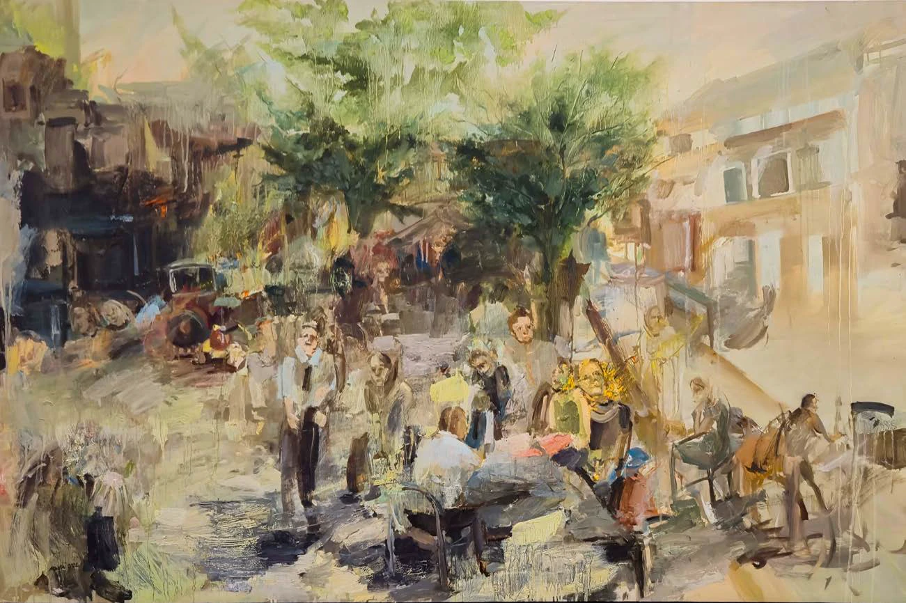 در منطقه خاکستری صلح و جنگ بی معناست، اینجا مکان بی طرف است، مکان مشاهده و عبور. چهره ها در مه زرینی فرو می روند و فضا در اعوجاج واقعگرایی، ایستایی خود را از دست می‌دهد. حتی رنگها نیز گم و پیدا می شوند و حضور و غیابشان تردید نقاش را برای باور کردن آنچه می بیند نشان می‌دهد. او در گوشه ای می ایستد و قلم اش را می لغزاند میان دلبستگی یا فرار از میان آنچه پیش رویش قرار گرفته تا آن لحظه خوشی گذرا را در ابدیت رها کند.