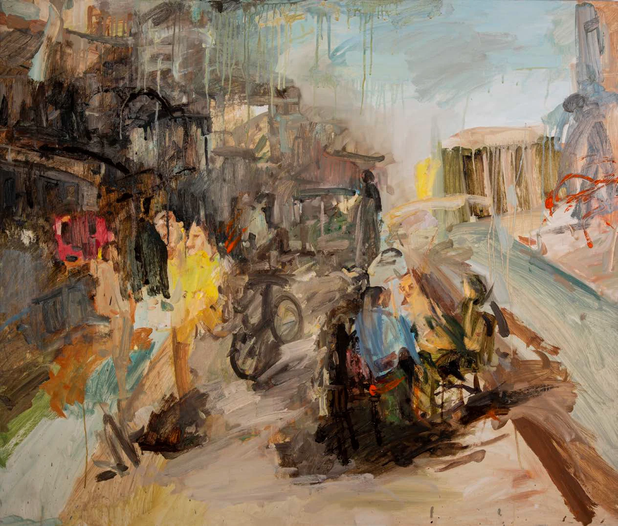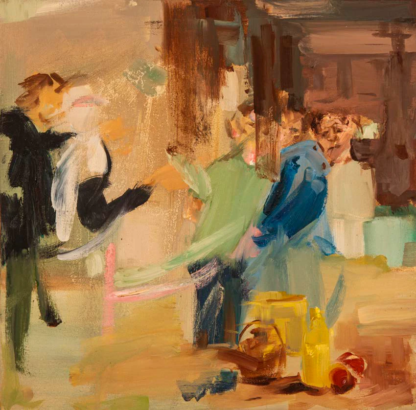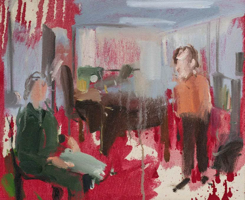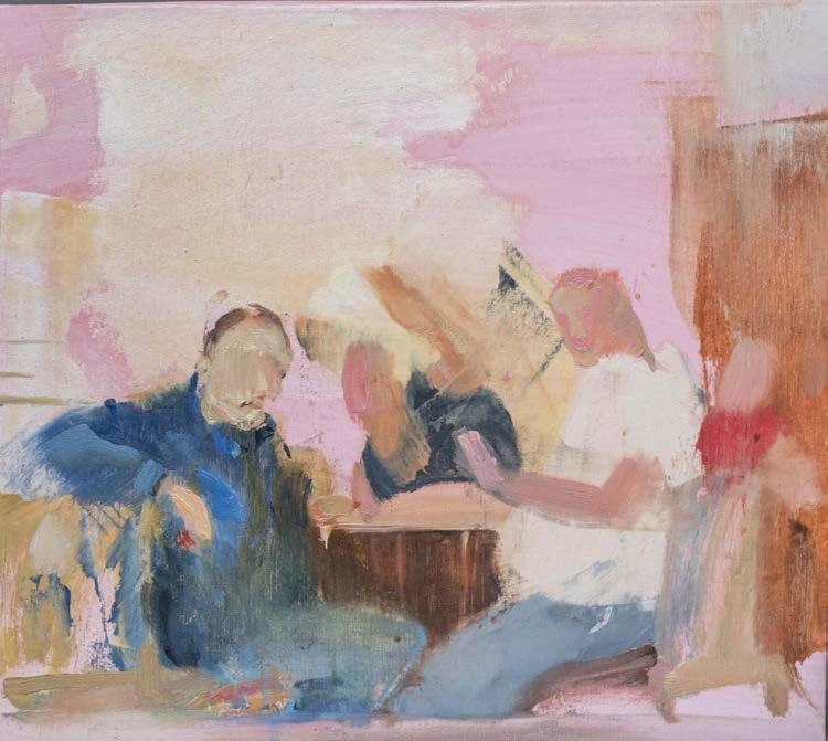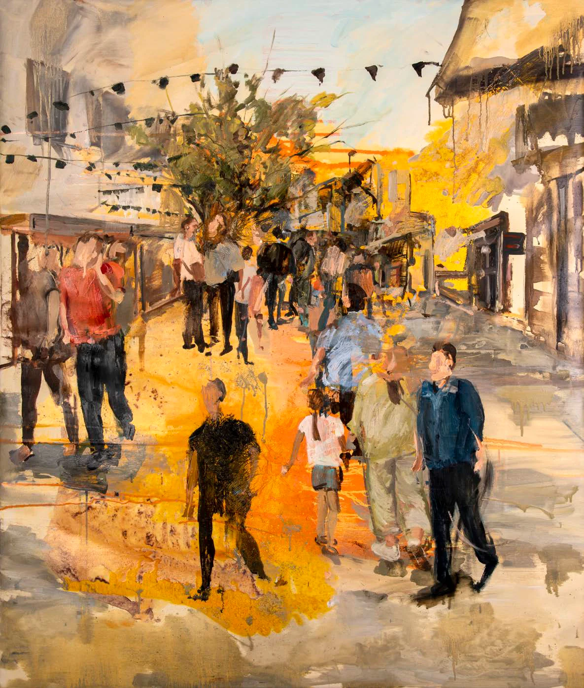 در منطقه خاکستری صلح و جنگ بی معناست، اینجا مکان بی طرف است، مکان مشاهده و عبور. چهره ها در مه زرینی فرو می روند و فضا در اعوجاج واقعگرایی، ایستایی خود را از دست می‌دهد. حتی رنگها نیز گم و پیدا می شوند و حضور و غیابشان تردید نقاش را برای باور کردن آنچه می بیند نشان می‌دهد. او در گوشه ای می ایستد و قلم اش را می لغزاند میان دلبستگی یا فرار از میان آنچه پیش رویش قرار گرفته تا آن لحظه خوشی گذرا را در ابدیت رها کند.