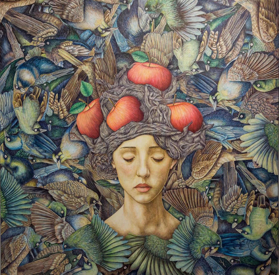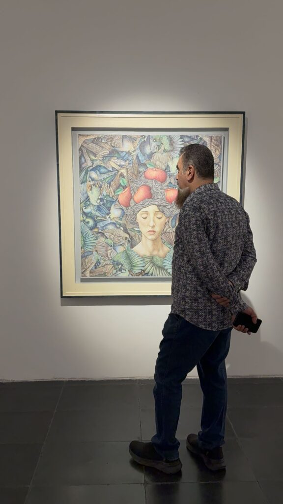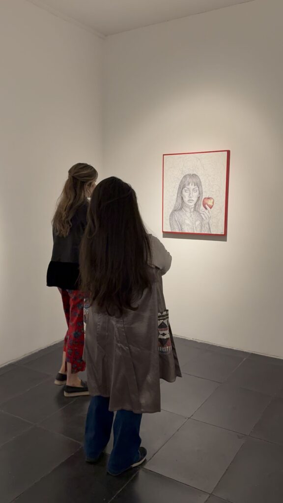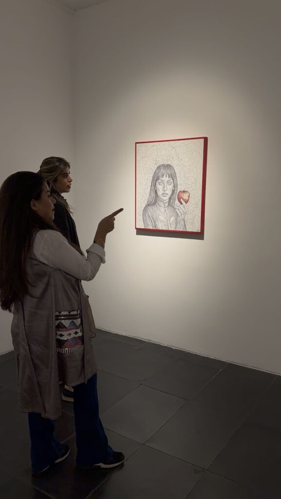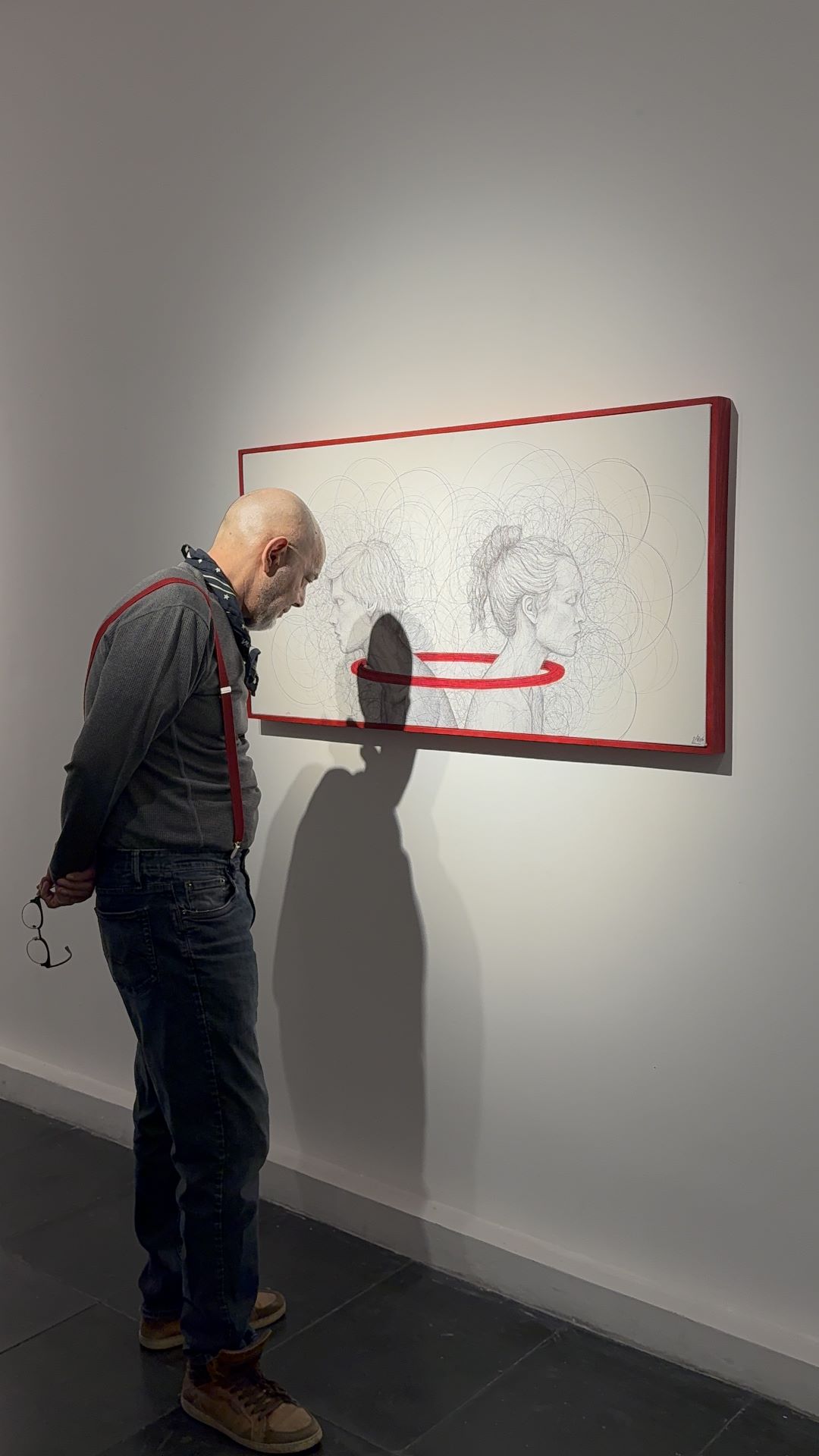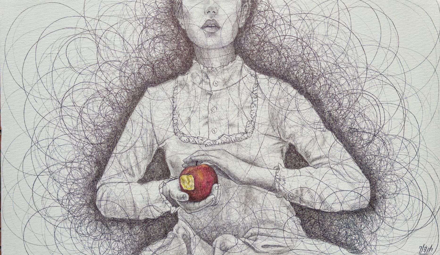 چهرهها از دل خطوطی درهم و بیقرار سر برمیآورند؛ خطوطی پارادوکسیکال که همچون آشوب ذهنیاند و در عینحال، هالهای از سکوت.